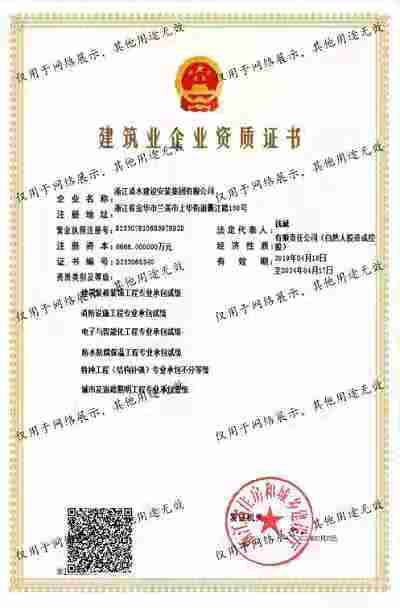 浙江清水建設安裝集團有限公司成立于2013年,注冊資金6688萬元。集團具有消防設施工程專業(yè)承包壹級、城市與道路照明專業(yè)承包壹級、電子與智能化專業(yè)承包壹級、建筑裝飾裝修專業(yè)承包貳級、防水防腐保溫專業(yè)承包貳級、市政工程施工總承包貳級、機電工程施工總承包貳級、建筑工程施工總承包貳級、電力工程施工總承包貳級、機電工程專業(yè)承包貳級、環(huán)保工程專業(yè)承包貳級、古建筑工程專業(yè)承包貳級、特種工程結(jié)構(gòu)補強專業(yè)承包、建筑施工勞務作業(yè)專業(yè)承包(憑建筑業(yè)企業(yè)資質(zhì)證書經(jīng)營